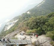 罗浮山的山势雄伟壮观,植被繁茂常绿,风景不错,一路上都有路牌提醒你海拔高度和前往飞云顶的距离。不错哦,风景挺好的,要是晴天去山顶应该景色更美。全程徒步的,下山马路有点陡,建议早点上山,提前做下热身运动,大概要爬四个小时,下山两三个小时。总体还是吸收了不少负氧离子,好评。
