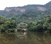 月城湖一片不是很大的湖,可以船游对岸,也可以走到对岸。在青山中不是很突显,但很静。青城山真的不愧是天然氧吧,绿植不是一般的多,进入景区大门后,上山前必经这里。游客们可以乘渡船(船票5元)到对岸,或走一旁的栈道绕行过去,不远