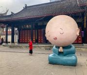 大慈寺引入了14尊巨型卡通和尚,全部身穿灰色的僧衣,其中有两座是人形的小和尚,而其他12座是卡通的12生肖和尚,十足卖萌。很多游客只为卡通和尚而来,无心拜佛上香只为和卡通和尚拍照,放眼全国寺庙,成都的大慈寺算是开启了大慈寺卖萌的先锋了。