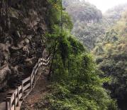 重庆的龙水峡地缝的特点就是水多,小溪、瀑布不时给人惊喜。沿着台阶往下走,比起三桥要累一些。如果风向往内吹,那么要小心路可能会比较滑。带好雨具应当是正确的选择。