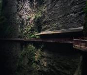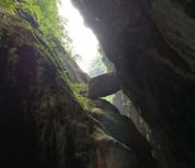 武陵山大裂谷景区,索道桥和青峰峡,阳关下的树影婆娑。电瓶车停运需多走六公里,加上原来的7公里,比较累且费时。最后的索道可做可不做,因为排队40分钟,多走六公里再站等四十分钟,的确累。不过风景很美,都是值得的。