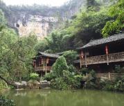 酉阳的桃花源景区,让第一次来的游客还是有点吃惊。确实和陶渊明笔下的桃花源有点神似:一座大山,中间一个大洞,进洞,有水流潺潺,沿着溪流穿过洞,里面豁然开朗,里面是一派田园景象,农田,屋舍。四周都是大山,把小小的村庄围在中间。只是,不同的是这个洞很大很大,也不长,不需要坐船,不时放出烟雾感觉仙气袅绕有如仙境。