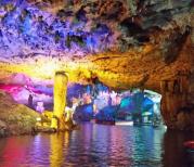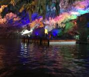 清明节去的时候隐水洞超多人,排了两小时才进去,进去后发现里面很大,有一段路程坐船,做完船再走,走完了坐火车,做完了小火车再走,然后就出门了,全程5.7公里左右,可以玩一个半小时,风景基本大同小异,景色完全靠灯光和想象,总体来说还是不错的