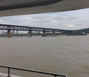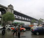 武汉长江大桥是在万里长江上修建的第一座大桥,因而被称为“万里长江第一桥”,也是武汉市的标志性建筑。到达武汉当天的上午,天气晴朗,出租司机师傅都说难得这么清透的好天气。没想到傍晚上桥没多久,雷电交加、暴雨滂沱,游人躲进桥头堡避雨,欣赏这难得的雨中即景。