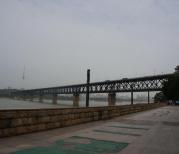 从户部巷反人流方向出来,就可见武汉长江大桥。附近有武警兵营驻扎。不远处红色的是长江二桥。江边开阔,有渡轮。大桥二层,上面走汽车下层走火车。看这些历史旧建筑物,都有点岁月静好的感觉。