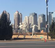 大连的星海广场星罗棋布,各具特色。广场给城市带来了很大的空间感,也给当地人带来更多的幸福感。星海广场,坐落在美丽的星海湾,是亚洲最大的城市广场。第一次是在晚上一睹她的华丽与妩媚。整个广场被灯光月光点燃,犹如梦境一般。第二次是临行前再次来访,想看看白日里的星海广场,更为真切。广场,面朝大海,背依繁华的都市,视野开阔,心境旷达。从广场中心南行,“百年城雕”如一本打开的书展现在眼前。印有各界人士的足迹浮雕,由北向南坚定而清晰,同城雕主体连接。海鸥,白鸽就在我们身边玩耍,飞翔。眼前的跨海大桥如绸带飘在眼前。