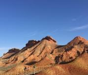 张掖丹霞分七彩丹霞、冰沟丹霞。前者色彩鲜艳,后者颜色比较单一,面积大,比较壮观。七彩丹霞有临泽县和肃南县两个入口,是分别售票的。这次去的是临泽,夜宿七彩镇,就在景区北入口,统一规划的旅游特色小镇,很多农家乐。景区下午6点停止售票,最后一班观光车是6:30(只是景区入口进景区的,景区内回入口的车要到7点多,一直到天黑) 建议下午3、4点进景区,可以一直逛到太阳下山,现在开放的是1,2,4,5观景台,4号看日落最好,5号比较壮观。记得买门票时在售票处登记身份证信息,在门票上敲章,晚上住七彩镇农家乐,让老板也在门票上敲章,第二天早上8:00前可以凭票二次进景区看日出,但观光车票还需再买,日出一般在6