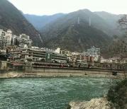 大渡河从泸定县城穿城而过,水流湍急,水很清澈。因为上游修了水电站,截住了大部分河水,所以县城这部分河水不大。而今天大渡河二边的各种各样的桥梁之多,已经超过了我的想象,光那种“铁索桥”在泸定和摩西之间好像就已经有五、六座了。