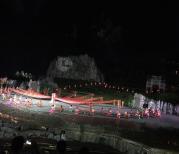 在恩施大峡谷晚上观看《龙船调》,真是一场视觉听觉的盛宴。回味无穷。景区峡谷入口是两壁葱郁的山林,拾梯而上,仰望山顶,天空中艳阳映照,山间有云雾缭绕,心中自是惬意,行过百梯,一路上有奇石,鳞次栉比,或兽或禽, 示牌书意有“龙爪石印”、“猎豹回头”、“狮吼虎啸”…