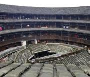 福建土楼风景区,闻名遐迩。怀远楼是其中最大的一个土楼。 当时福建土匪猖獗,老百姓就建造了这样城堡式的建筑。里面可以住几百户。有水体,可以储存粮食。