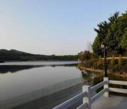 牛鱼嘴风景区树林茂密,湖水荡漾,空气清新,一进园区内就有个大大的湖,不知道是天然的还是人工的,湖上面有人在划艇,水很清澈干净,完全不像广州的湖,像死水一样,湖和后面的大山融为一体,青山绿水,让人心旷神怡。
