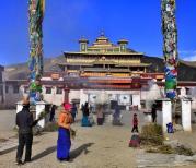 早在来西藏之前,忘记了看了哪一本书曾经提到过桑耶寺和青朴,都是那么清静,神圣,有灵气的地方。有人曾经说过桑耶寺的名称很有诗意,桑耶与上耶相似。进入桑耶寺,顺时针往里走,首先见到的是主殿。著名的三种建筑风格集为一身的主殿。藏,汉,印,三种风格结合,每一种风格都有它的文化背景和历史,那么多年来,传承下来的就是眼前这个有灵气的桑耶寺。桑耶寺也被称为''西藏第一座寺庙''。这一天也是我在西藏这么多天来,第一次感受到佛教的历史文化,感受到佛教的精神,感受到那份心灵的清静。进去后围绕着顺时针走一圈,但内部不能拍照。外围都是转经筒,沿着外围,手转转经筒,看着左边的壁画,历史的痕迹。