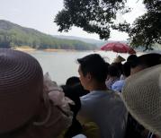 大金湖有水有山有古迹,各种类型都有一些,种类比较齐全。首先要坐船,然后去到各个岛靠岸,有悬空古寺、一线天等等,动的有滑道,静的有一些表演。