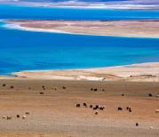 当惹雍措旁栖息着许多牛羊,正在怡然自得地沐浴着阳光,看到此情此景,哪怕是舟车劳顿的旅行者的心也能自然而然地放松下来,城市的生活实在太喧嚣,来到辽阔的大西部可以得到难得的放松,洗涤一下城市人天天对着手机电脑疲劳的双眼倒是不错的选择。