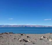 扎日南木错,湖床开阔,宁静辽远。如果不是看到对岸的远山,一定会误认为是大海,而它却比大海温柔、细腻、充满柔情。风和日丽,在高原太阳光照射下的湖面波光粼粼,泛着耀眼的极地蓝光,仿佛湖底下深藏蓝宝石,穿透湖面,蓝得分外妖娆,纯净透彻。环顾四周目所能及之处,除了我们,不见任何人烟。在博大浩瀚的风景里,有的就是眼前这面幽深莫测、蓝得忧郁的湖水,这样的旷世奇景正是我多年来寻找的远方。