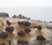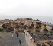野柳地质公园门票80新台币,很值得一看,地貌非常奇特,可以说怪石林立。海滩上自然形成一个个蘑菇状的大石头,造型各异。其中最有名的怪石是“女王头”,照相需要排队。