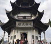 齐云山不高,但云雾袅绕的。步行上山,看看景色,锻炼身体那必是极好的,就果断走山道了。先是爬了一路的石阶,到了半山腰的时候就可以看到刻字的石壁,特别气势恢宏。路过寿字的时候记得过去走一走,不是有句话说的好吗,寿下走一走活到九十九
