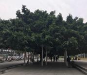 北部湾广场位于四川路与北部湾中路和北部湾西路的交叉口。广场四周高楼林立,交通方便,走近广场就被大榕树下的歌声吸引,一群文艺爱好者自拉自唱的、配乐合唱的,翩翩起舞的,热闹非凡,我们还以为在演出呢。观看的人群围着一个圈,兴趣很浓,气氛很热烈。