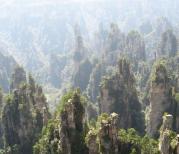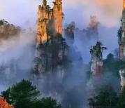 天子山位于张家界国家森林公园的北部,东临索溪峪景区,因明初土家族领袖向大坤自号“向王天子”,而得名。在这里有机会可以观赏到云雾、月夜、霞日、冬雪四大奇观。亿万年前的天子山是一片汪洋大海,后来由于复杂而漫长的地质过程,形成了天子山中的御笔峰、仙女献花、点将台、空中田园、仙人桥等各种造型奇异的地质景观。