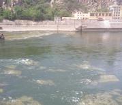 河南三门峡大坝利用了这三个天然岩石基座建立的大坝,所以地基稳固。这时的雾气开始散去,河中心的中流砥柱清晰可见,黄河水由于这里的拦截变得清澈,远没有壶口的咆哮和混黄。