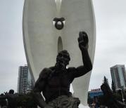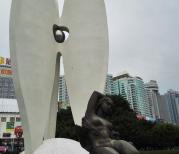 北部湾广场中央有个南珠魂雕塑,广场周边种有不同的树,有木棉和龙眼,感觉没有太大的惊喜 周边都是大商场和超市 电动车和摩托车很多 马路显得很乱 人行道可能长期被电动车、摩托车压着走,所以很破烂,很多坑,由于当地人大部分都是开电动车出门,所以广场周边的停车场都停满了,行人走路的时候要留意。