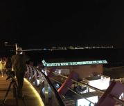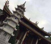 傍晚来到南普陀寺,不用门票,地点就在厦大北边。除了参拜寺庙,一定要爬爬后山练练身体,可眺望市区街景,厦门双塔的地标一览无遗,美不胜收。寺旁有块大石,大伙围着它丢硬币许愿,若硬币停留在石上,则愿望成真。瞧,大伙都很努力丢着.... 下山时,已天黑,寺庙打着灯,此时仅有稀稀落落的游客,真是十分写意...