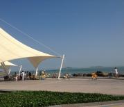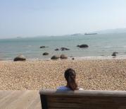 环岛路超级好。美极了!白沙滩、蓝海、木栈道、岸上的各种树、海边双人自行车的游人、各路大巴,构成一幅完美的图画。坐在沙滩上,海风徐徐吹来,听着海浪的声音,惬意极了