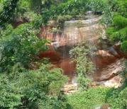 红石野谷景区位于赤水市大同古镇华平河畔,距赤水市区仅16公里。景区主要由“丹霞壁画石刻长廊”和“观音沟原始生态瀑布群”两部分组成。丹霞壁画石刻长廊是红山野谷的特色景观,整个长廊呈红色蜂窝状,这些“蜂窝”的形成有两种解释:一种解释是水蚀或风化作用不断剥蚀岩层表面而形成的;另一种解释是一些小型软壳类动物死后沉积于此,后来受构造抬升作用,岩层露出地表,在风化作用形成。“蜂窝”有大有小、有疏有密、有深有浅......其形状多种多样,有的如佛,有的如蛙,有的似鹿......最奇异的是这只“丹霞金蟾”,据说它经过了1.35亿年才修炼而成,吸天地之精华,具有无与伦比的灵性,被称为举世罕见的吉祥之物。还有“挂