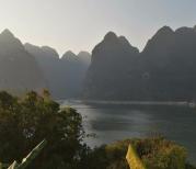 万峰湖位于 贵州 省 兴义 市,该湖是因为在 广西 和 贵州 交界的南盘江修建天生桥水电站而形成。原名为天生桥水库,因为处于 兴义 市的峰林地带,因此取名万峰湖。万峰湖可以去红椿码头和南盘江镇(巴结镇)两个地点游览,其中红椿码头水上峰林景观十分壮丽,这里有著名的 吉隆 堡度假村,而南盘江镇的更为开阔。我们选择了更有生活气息的南盘江镇。从箐口到巴结镇5元车费,从 兴义 南客运站到巴结12元。