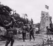 来到娄山关景区门口,没有拥挤的人群、没有矗立的高楼,没有嘈杂的闹声、没有伤身的尾气,唯有的就是青山、绿水、就是鸟啼、欢笑,就是激情、活跃、就是枪炮、坦克,还留有一丝庄重,周围充满着浓浓的红色、战争气,走进景区,富有年代感的画面瞬间瞬间映入眼里,看到很多的红旗、枪炮和碉堡,真的被吓得一匹。(关键是真枪、真炮啊),有射箭项目。还有一些类似军校一样的“训练场”,难度相对来说,还是非常大的。