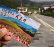 大韭菜坪景区有2个大门,我们是沿路一直往山上开,到达停车场,是东门。门票25元,广东籍全免。为了保护野生韭菜花,进景区必须乘坐索道或观光车,今次行程我们坐索道上,观光车下。只需花点银子,便能免去跋山涉水之劳,不费吹灰之力凌驾于这天上花海。我喜欢这样的旅游!我们选择了乘坐索道上山,山脚到山顶的高差是400米左右,大概需要20分钟就能上到“天上花海”。韭菜坪上气象变幻多端,景色也瞬息万变。时而,视野开阔,一览众山;时而,云雾飘渺,如仙境般。山顶的草坪区域里,修了很多架空的木制步道,以保护草坪。对面山坡上懒洋洋转动着的大风车和这满山花海真是绝配,不经意间这些风车很自然地就融入到眼前的美景中,成为不可
