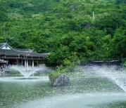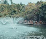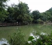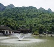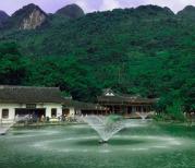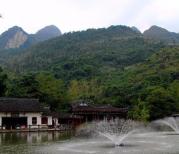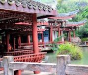 天星湖景区的中段,很有意境的一个地方,远方的山,蓝天白云,仿古建筑,湖中有很多莲花,还有缓缓转动的喷泉,宁静而惬意。当疲劳时可以坐下来休息稍作休息,这里有茶座,汉堡,饮料,特产的食物出售,要走全程的可以在这停下来休息调整下,这个地方适合停下来慢慢看。