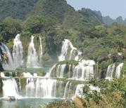德天瀑布风景很好,适合拍照,对岸就是越南,不时有人撑着竹筏开到岸边兜售越南香烟(也不知是不是越南人,说的也是普通话),走到瀑布上面就是界碑,界碑旁是一个越南集市,这里的东西挺多,还可以砍价呦。
