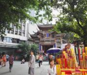 罗汉寺的出名,要归因于那部最早让大家认识重庆的电影《疯狂的石头》。罗汉寺的位置,可算大隐隐于市,竟然就在渝中区最热闹的小十字站。从长江索道入口步行十分钟,就是罗汉寺的大门。我们是乘长江索道后吃好午饭,转了一圈才找到罗汉寺,靠近解放碑。