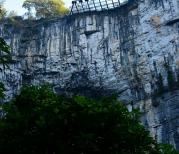 天福官驿因为张艺谋的那部电影《满城尽带黄金甲》火了,里面其实不大,但在天生三桥的青山包围中这么一个古代馆驿显得特别好看,里面一直在放电影里的相关片段,终日不停。就在天坑入口附近,从景点大门口要坐电梯下去,然后就可以看见了,很多电影都在这里取景,景色不错,从上面看效果比较好,还不错。