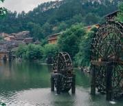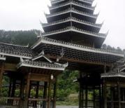 进入肇兴侗寨,右边是依山而建的层层叠叠的吊脚楼!左边是一片湖滨。湖滨叫做”天鹅湖“ 。昨晚一场暴雨,湖水上涨,上游冲下的河水,使碧清的湖水变成了黄色,有点遗憾,否则景色更美!穿寨而过的小河,在入湖处有一座 ”风雨桥“,桥旁边,还有一座水车造型,背景是苍翠的青山,前面是平静的湖水,景色十分漂亮!湖中一块巨石,刻有 ”天鹅湖“ 三字!湖中还建有一座观光栈桥,木板的桥面,古藤造型的栏杆,配合湖景更加漂亮!还有民族服装租赁。我要是女同胞,一定租一件,借这美景拍摄一张带回家! 肇兴侗寨四面环山,寨子建于山中盆地,一条小河穿寨而过。肇兴侗寨在穿寨而过的小河