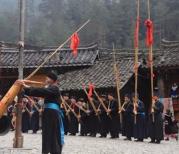 郎德苗寨的中心,就是芦笙场上的表演,表演的时间不是太长大约半个小时,已经动用了几乎全寨子的老老少少。敬酒歌、苗族飞歌、芦笙舞、铜鼓舞、板凳舞、集体舞,一边看我一边羡慕他们的歌舞生活。候场演出的时候,大家也没闲着。这里没有后台,所有演员在后台的动作尽收眼底。妈妈们照顾孩子,老奶奶一边唠嗑一边绣花。