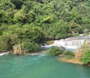 小七孔在摆渡车区间,玩完这个景点去车站,摆渡车会带你到下一个景点,不会走回头路,稍微有一些人造景观,满眼的绿色,总体感觉不错,其实还是照片好看,不知道为什么有些水里会有泡沫,看起来有些脏,只是没有艳阳高照,要不然水会成蓝色。虽然是出了五一假期的第一天,也没有人很少,老年团居多