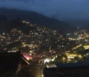 舞阳河北岸才是镇远古镇的古街,从新大桥到祝圣桥中间都非常热闹,中间还有几条古巷可以进去逛一圈,分布着好几个大宅子,这几个大宅似乎现在还是有人居住在里面的,这都是当时在镇远经商的大财主留下来的,可想当时的镇远富商云集,商铺林立。我们一路向新大桥的方向走,太阳已经落山,远处的云彩还依稀遗留着一点余晖,华灯初上,新大桥已经被灯光装扮的格外美丽,来到桥上,两边房子上的灯还是稀稀拉拉的,于是向当地的居民打听,得知,灯光开放是不定时的,有些开的早,有些开的晚。一看时间还有10分钟到8点,于是就决定再等一会,果然到了8点,很多房子上的灯光都亮了起来,整个舞阳河也好像活了起来,几条游览船在河道中穿梭,两岸的人