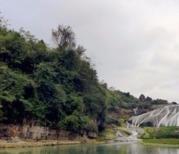 陡坡塘瀑布位于贵州省黄果树瀑布上游1公里处,瀑顶宽105米,高21米,是黄果树瀑布群中瀑顶最宽的瀑布。陡坡塘瀑布顶上是一个面积达1.5万平方的巨大溶潭,瀑布则是形成在逶迤100多米长的钙化滩坝上。陡坡塘瀑布还有一个特殊的现象:每当洪水到来之前,瀑布都要发出"轰隆。轰隆"的吼声,因此又叫"吼瀑"。1983年版西游记片尾曲拍摄地。