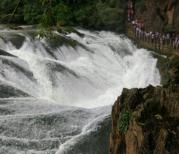 银链坠潭瀑布是黄果树瀑布天星桥景区中的一个景点,听这个名字就能知道,瀑布落下如同一颗颗珍珠落下,这个瀑布只有十余米高,上面成漏斗形,底部是槽状溶潭。但是就个人观点,瀑布壮观与否,完全取决去水流量,枯水期跟潮水期景色相差十万八千里,由于我当时去的时候水量还不是一年中最充沛的时候,看着也就马马虎虎,如果7,8月份去的话,那肯定是另外一番景色了。