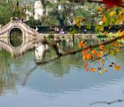 南湖美丽的南湖,平滑如镜,古树环绕,水面投射出古桥、古民居的倒影,一幅令人流连的山水画卷。顺着湖边的堤路走着,看着倒映在湖里的映像,湖光山色与层楼叠院和谐共处,四周山色与粉墙黛瓦倒影湖中,好似一幅徐徐展开的画卷。人在画中走,画在心里留