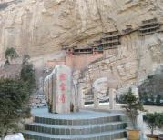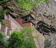 悬空寺寺坐北朝南,阿里四大著名河流之一的孔雀河就在脚下缓缓流过。它是在岩壁上依山凿洞建筑的。寺内有木梯与各层连接。木梯由独木雕成。沿着山坡有阶梯和小路,可以从山脚登临寺庙。
