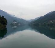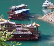 乌江百里画廊游船从万足码头开往龚滩古镇,船行二小时十分钟,一路青山绿水,景色优美。经过洪渡大桥后,右边是贵州的洪渡古镇,左边是重庆的龚滩古镇,一江跨两省三县,非常值得一游。