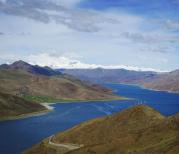 羊卓雍措湖面一片翠蓝的平静,仿佛可以听到自己的心跳声。西藏有着很多令人惊艳的湖泊,第一眼看到羊湖,肃然起敬。湖中的水主要来自冰雪的融水,纯净的湖水配上悠悠的白云,美轮美奂。羊卓雍措最佳的观景台和拍照的地方就是经幡处了。在这里可以俯瞰羊卓雍措的全景,也是众多摄影爱好者的拍摄圣地,很多人都慕名前往这里拍摄。藏民用经幡祈福,作为福运升腾的象征物每年都要换,保佑我们此次旅途平安顺利吧~去西藏之前不知道湖可以美成这样,天蓝水蓝,一幅绝美的画卷。羊湖的湖水给人一种很神秘的感觉,幽静而又无尽的纯粹。湖中山地突冗,岛上牧草肥美,野鸟成群,是野生动物良好的栖息地。羊卓雍措之所以被称为“圣湖”,据说主要原因是它能