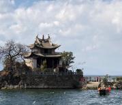 大理小普陀,真是小到令人惊叹!从岸边到岛上也就30米左右的距离,却要坐船,有趣的是这渡船不用划桨,用手拉着一根连系着两岸的绳子就过去了,这也是我迄今为止看过的最别具一格的渡河方式。岸边上的小集市倒是挺不错的,有吃有喝,可以放松休息一下。