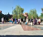 张掖湿地公园南门口坐8路车,1元1人到商贸大世界下来就到大佛寺了。大佛寺门票20一人(乃淡季半价票,老人一样)。11:40入内,12:20出。图8的演出没有见到。 到很近的南大街董记牛肉小饭外卖了一份大的8元。