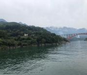 大清江水绿得象宝石一样,我第一回见到这么清这么绿的水,真真是清山绿水啊。随着船向前行驶,两岸的峡壁也一幅幅地在眼前展开。山岩上居然还有不少村镇,他们是巴人的后代吧。象带子一样的公路挂在半山腰忽隐忽现,时不时地有汽车飞快地驶过,让人感受到了现代文明的气息。
