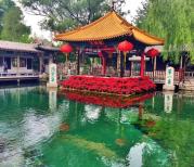 趵突泉“四面荷花三面柳,一城山色半城湖”,趵突泉位于济南市历下区,南靠千佛山,东临泉城广场,北望大明湖,五龙潭。该泉位居济南七十二名泉之首,被誉为“天下第一泉”。老舍这样写道趵突泉——泉太好看了。泉池是看不见方的,三个泉口偏西,北边便是条小溪,流向西门。看那三股水流,一年四季,昼夜不停,永远那么翻滚。