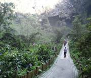 百魔洞非常值得一游,空气很好!洞中雾气缭绕,变幻无穷,天坑下面是郁郁葱葱的各种植物,还有很珍贵的恐龙时代植物,更使这个巍巍景观显得诡秘多姿。百魔洞内含有丰富的负离子,也拥有高浓度的电磁场,据说这里很适合养生。